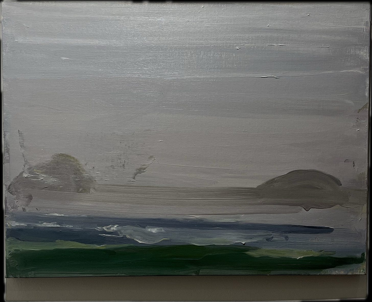 This week’s image is The Bangor Trail by Pat Harris. The trail that inspired this painting is in the North West and not the North East as you might assume. It’s an old drover’s path between Bangor-Erris and Newport - requiring sturdy boots and fitness. Pat Harris is one of a number of prominent artists that are drawn to North Mayo - Hughie O’Donoghue and Donald Teskey are others. Harris has his own unique take - mostly looking seaward to the rocks and stacks and the swirling mist around them. The title of his current show at Taylor Galleries is Niks - the Dutch word for nothing. A word that befits the desolation and famine-scarred wildness of the region, on the edge of the vast and implacable Atlantic . The soft, muted tones of his paintings remove the drama and replace it with a tranquil, meditative feel - oceanic even.